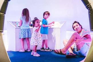 all exhibitsThe Dream Machine is located on Floor 1, one level down from the main entrance, next to Little Dreamers and Art + Tech.