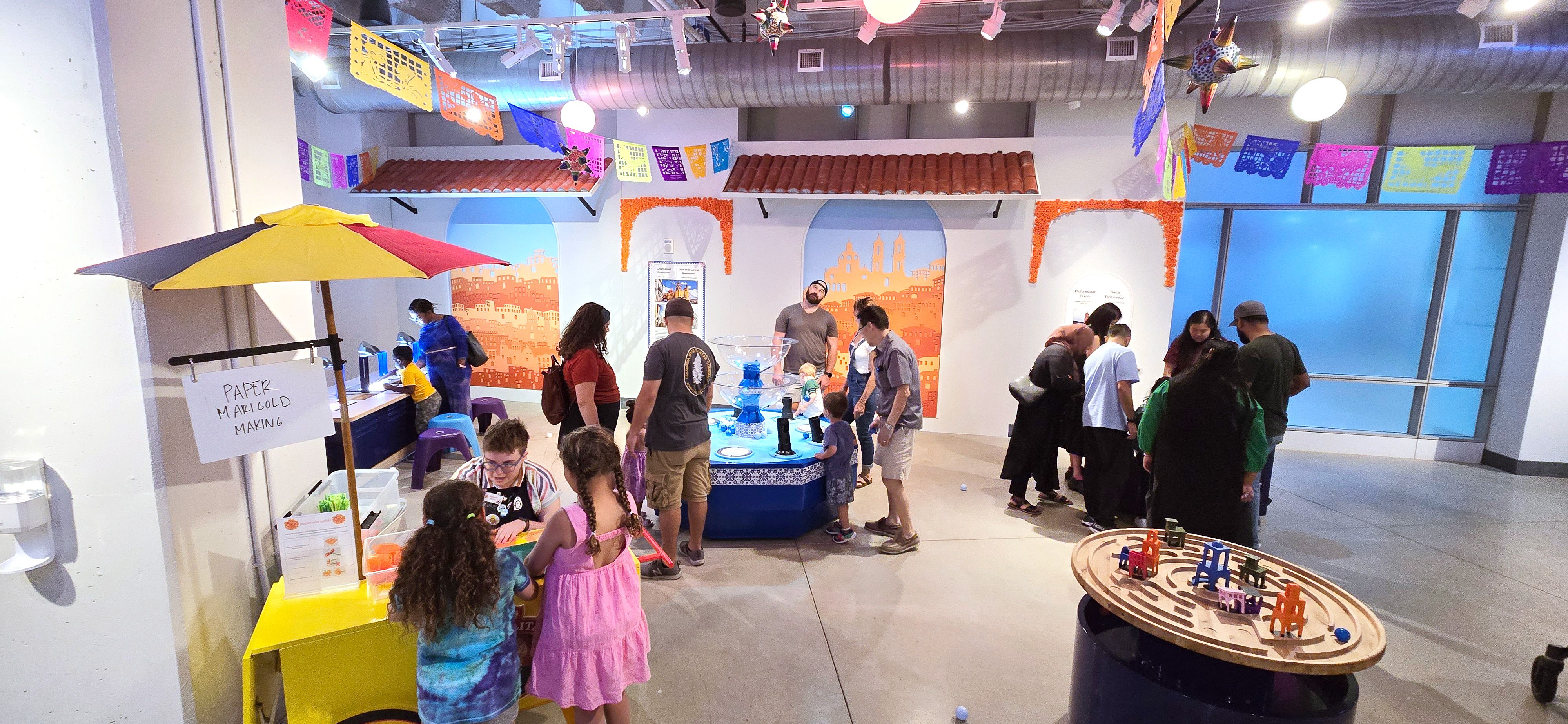 Explore Mexican cultural traditions in this enchanting plaza bursting with STEAM concepts and interactive play. The immersive setting includes decoration, architecture, and cityscape silhouettes of Mexican cities that expand the worldview and sense of place for young learners. In Mexico, plazas function as gathering spots where communities come together. Join us at Placita Mágica to gather, celebrate, and play.