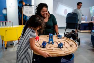 all exhibitsPlacita Mágica is located on Floor 1, one level down from the main entrance, next to Data Science Alley and Engineering Games + Play.